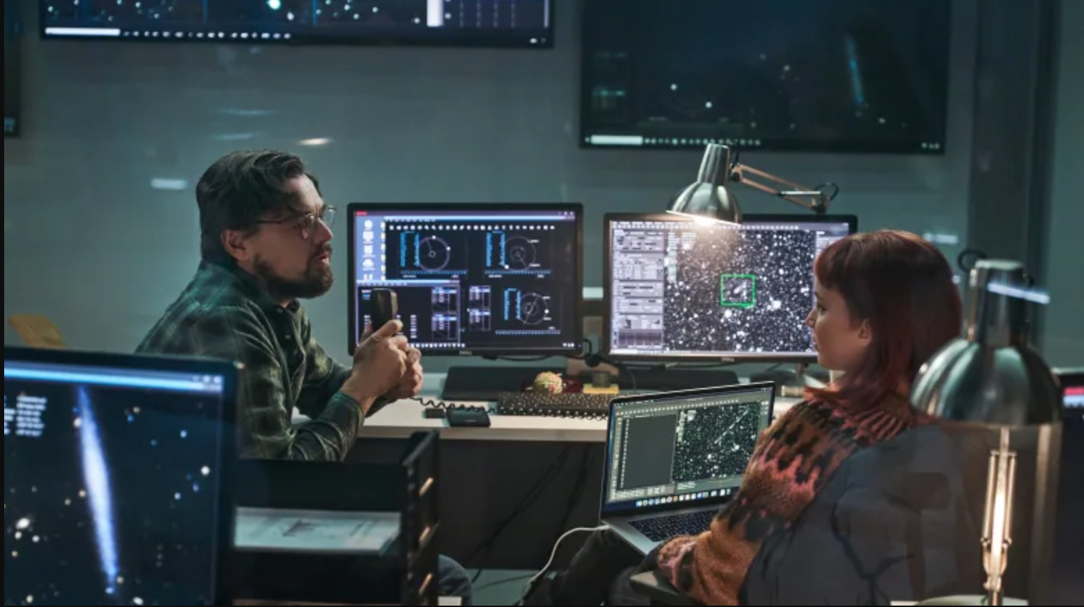 In their campaign for truth Dr. Mindy and PhD student Dibiasky, collaborated with Pop Star Bina to get the word out, but after Dr. Mindy could no longer handle keeping his cool, NASA pivoted the narrative away from the Michigan State research, and began calling it ‘Near-miss hysteria’. From this we get a disclosure moment about ‘party politics’, which comes through DiCapprio’s character Dr. Mindy questioning the validity of NASA’s leadership.