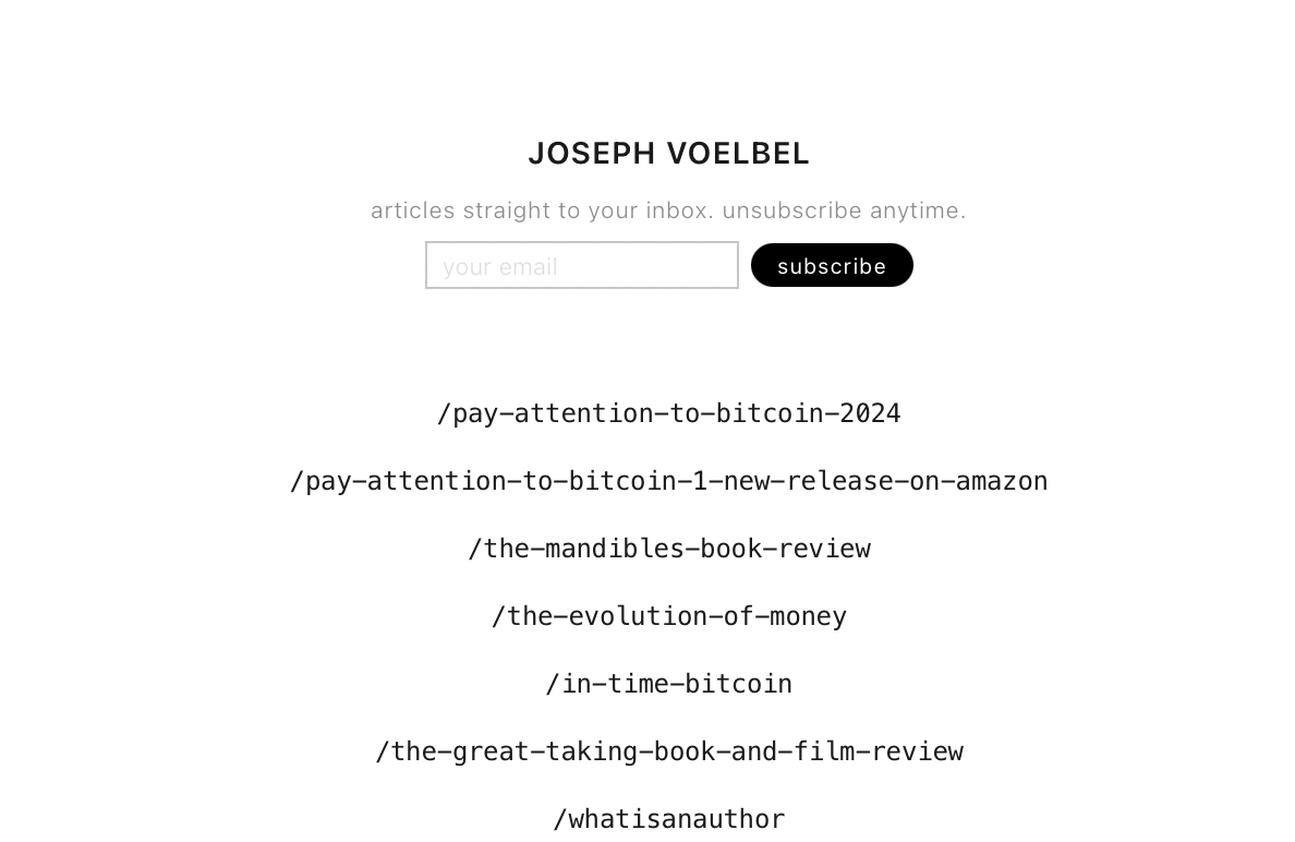 Joseph Voelbel is an AI Learning Experience Designer, Author, and Philosopher. Titles include Pay Attention to Bitcoin (2024) a punchy digital primer on sound money, and Nineteen Stories (2017), a literary collection exploring the unknown.